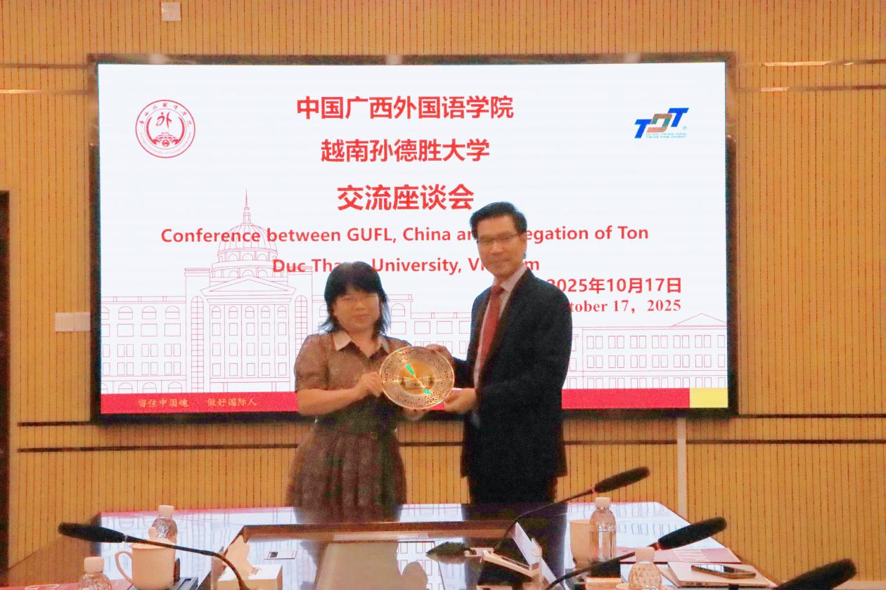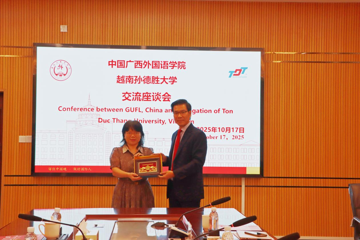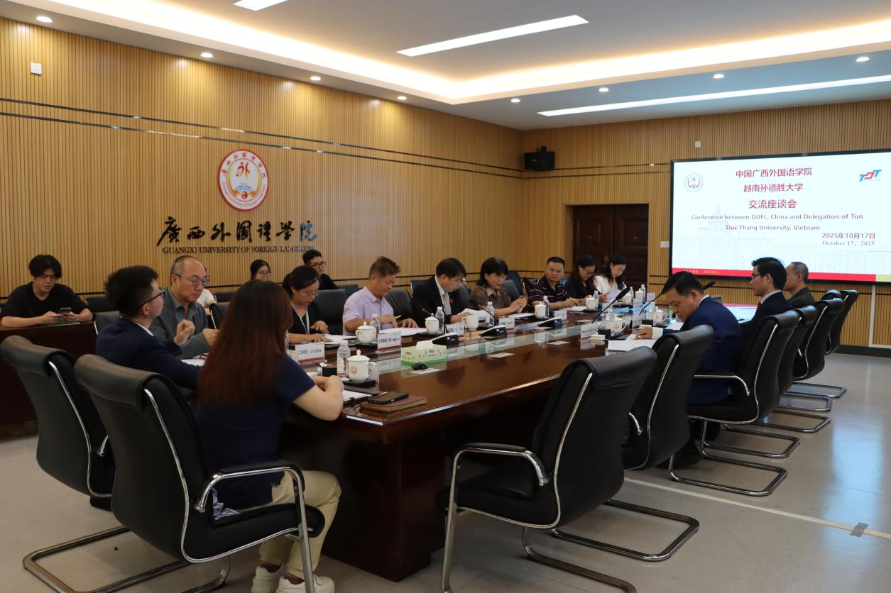 10月17日,孙德胜大学代表团到访我校进行参观交流。执行校长吕玲丽,国际交流处处长张云志、国际教育学院院长李艳、数字科技学院/人工智能学院书记钟明辉、东南亚语言文化学院院长朱春萍、东南亚语言文化学院银龄教师,副研究员农立夫、周新高迪控股有限公司董事家和、国际交流处副处长覃钧泽、欧美语言文化学院英语系主任蒙怡及国际交流处工作人员热情接待了代表团。
