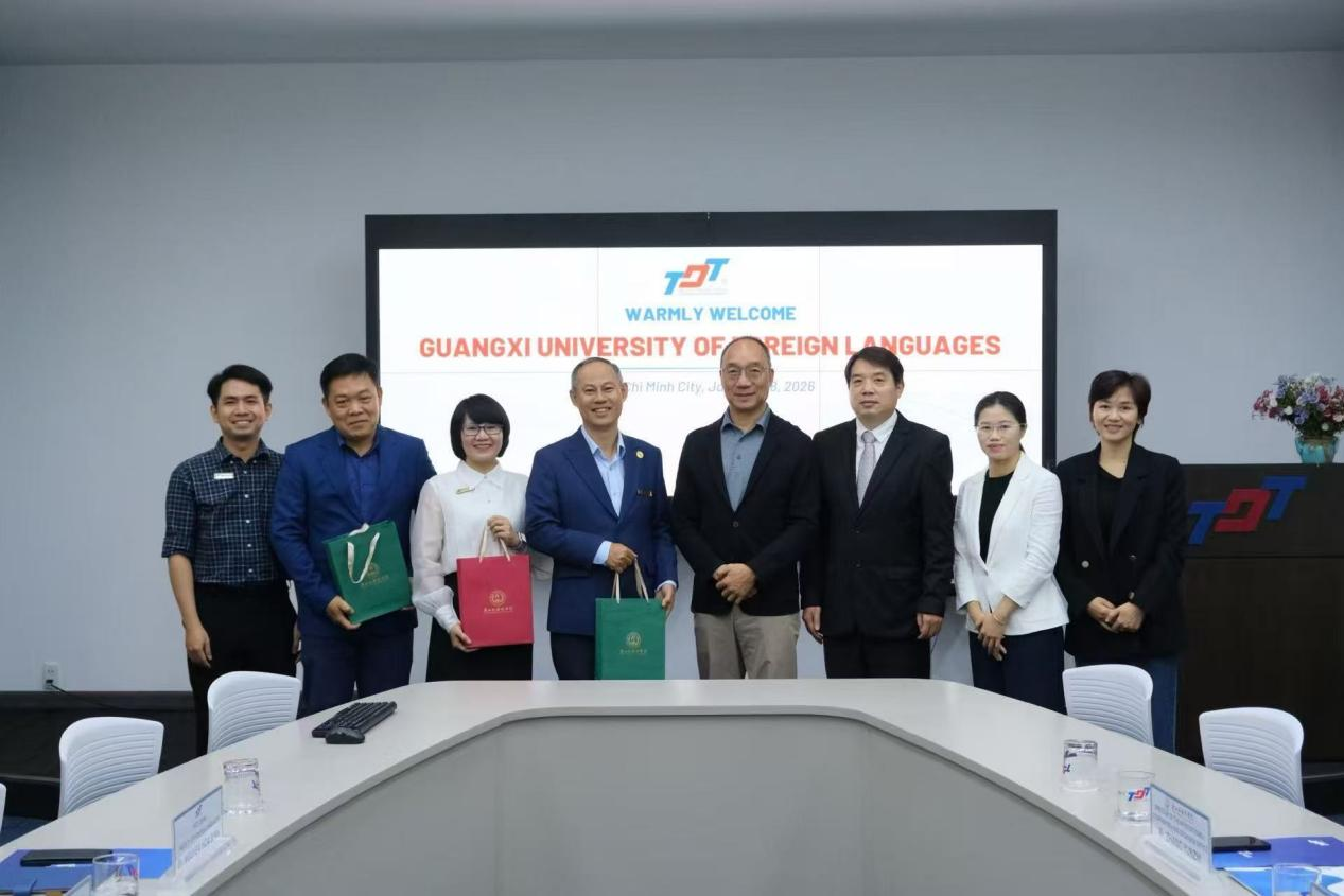 2026年1月28日至29日,广西外国语学院学校顾问、新高迪控股有限公司董事周家和与国际交流处处长张云志带队赴越南走访越南孙德胜大学、西贡国际大学、文献大学三所知名高校,并举行了多场深度座谈。双方围绕语言培养、专业共建、人才交流等领域达成一系列合作共识,取得多项实质性进展,为中越教育合作注入了新动力。