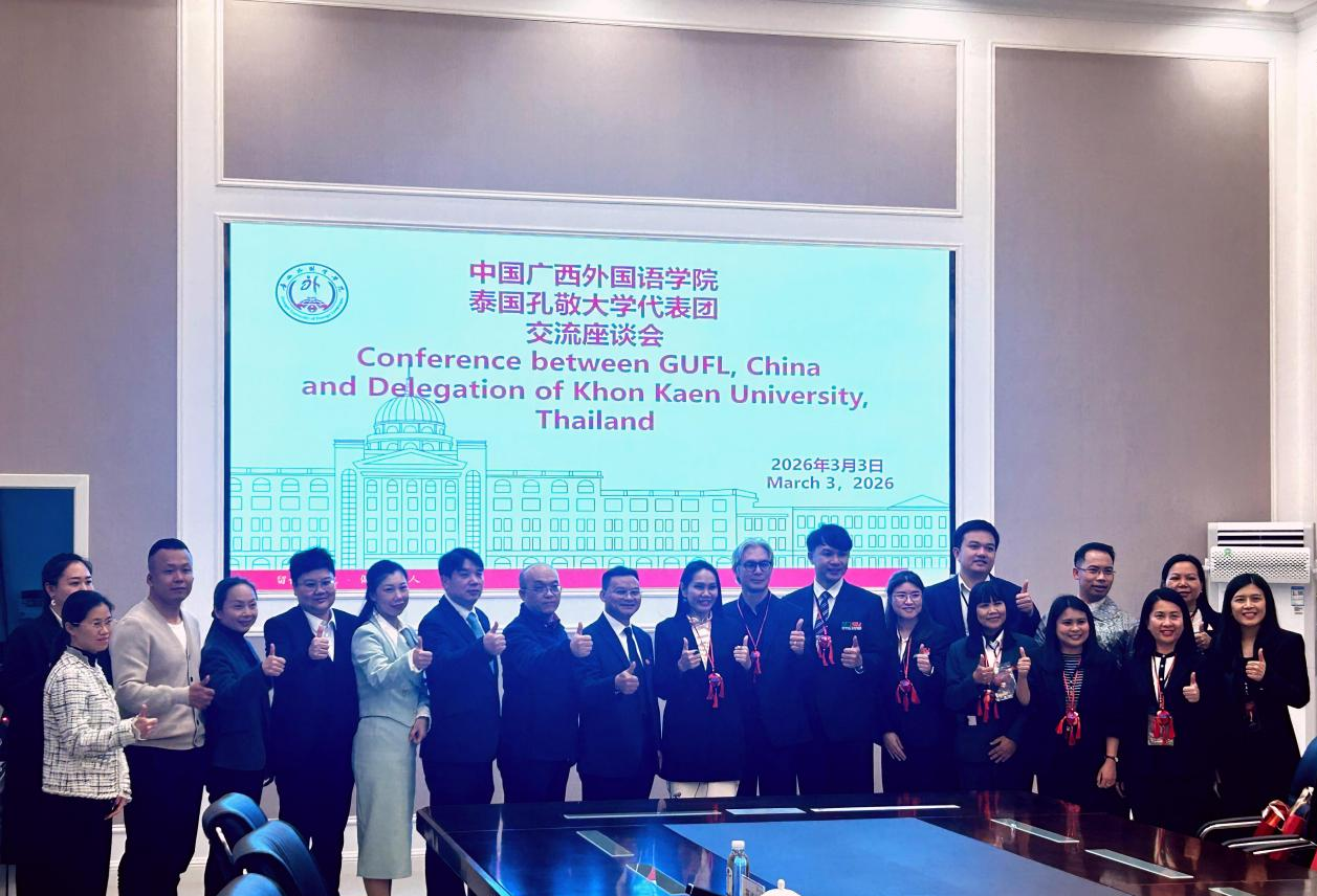 2026 年 3 月 3 日下午,泰国孔敬大学 68 人代表团(15 名教职工及领导、53 名学生)到访广西外国语学院,旨在深化校际交流、探讨合作契机。