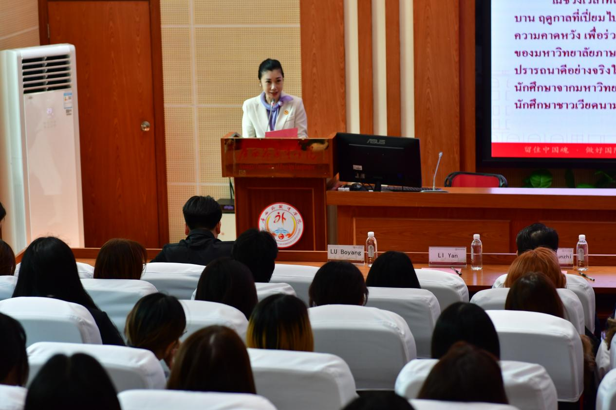 开班典礼上,国际教育学院院长李艳代表学校向全体留学生的到来表示热烈欢迎,向长期支持我校国际教育事业的泰国合作院校致以诚挚的谢意。她指出,学校始终深耕东盟教育交流,致力于为国际学生打造优质的学习平台,助力留学生学好中文、感知中国文化,成为中外文化交流的使者。