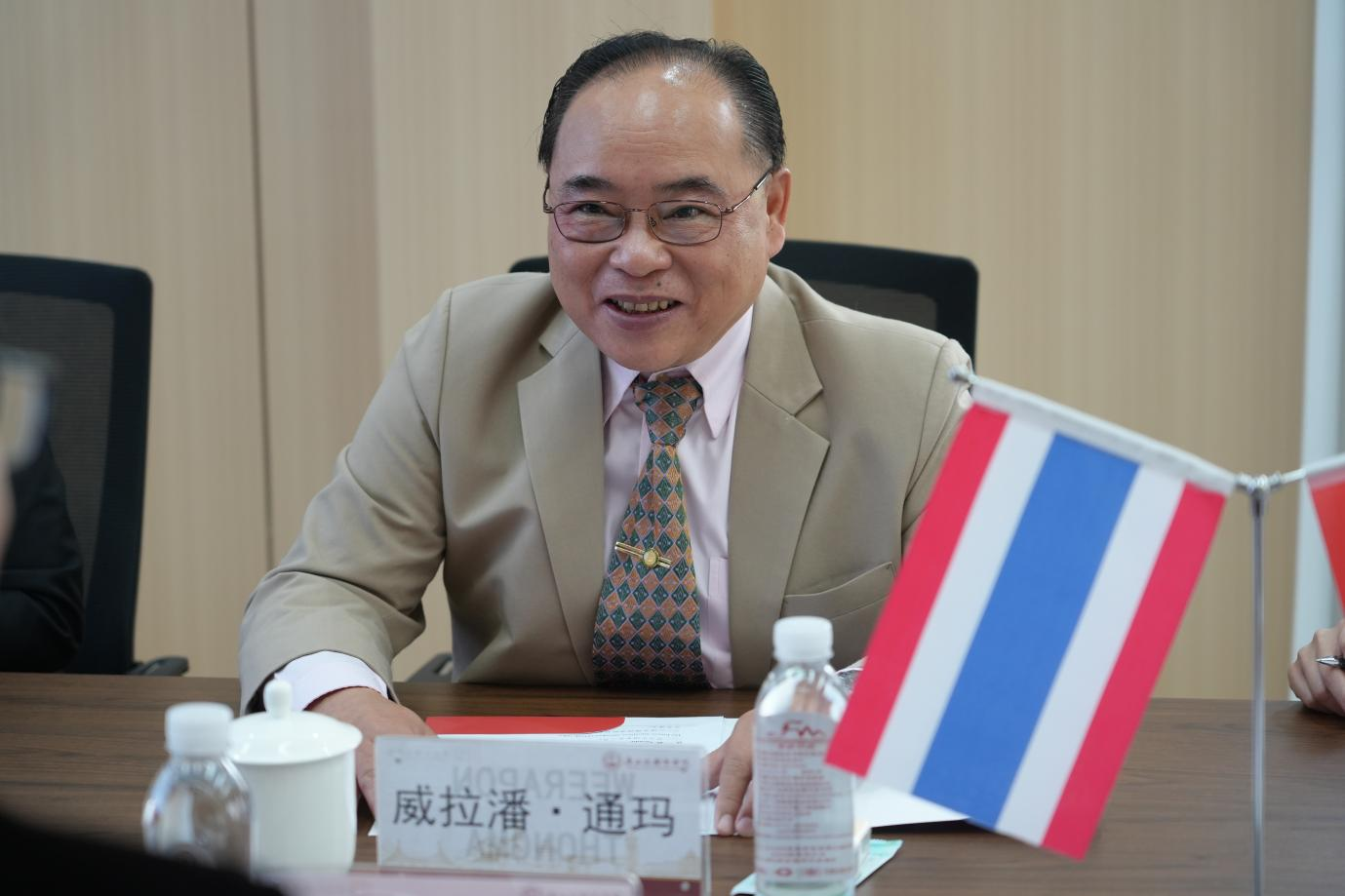梅州大学校长威拉潘副教授表示,自两校建立合作关系以来,双方始终保持着紧密的联系。梅州大学已累计派出17批学生赴我校留学。他还介绍了本校在药材种植与药物提炼方面的科研进展,并对我校人工智能领域的发展给予高度评价,期待未来在大健康和人工智能等新兴领域拓展合作。
